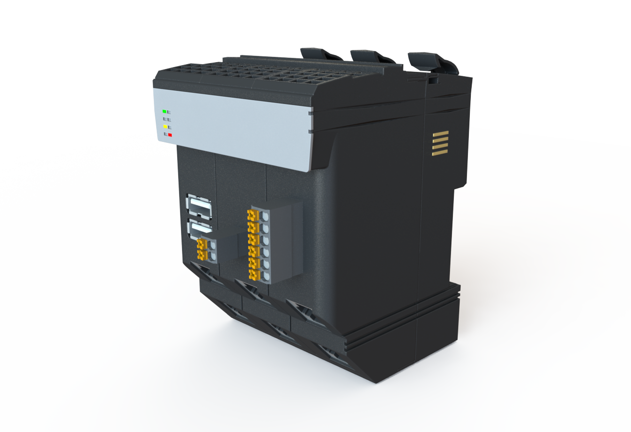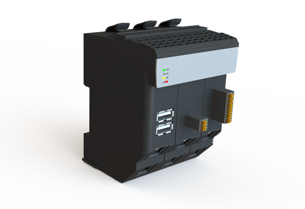IM302B PLC, Atom 1.3 GHz, 1 GB RAM, 64 kB FRAM, 2 GB flash, 1 insert slot for interface modules, 2 x USB, 1 x RS-485, 1 x POWERLINK, 1 x Ethernet.