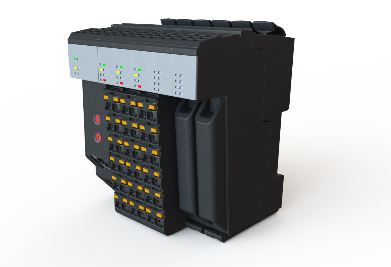 IM303 PLC, with integrated I/O, x86-400, 256 MB RAM, 32 kB FRAM, 2 GB flash, 1 insert slot for interface modules, 2 x USB, 1 x RS-232, 1 x CAN bus interface, 1 x POWERLINK interface, 1 x Ethernet, reACTION Technology, 14 digital inputs, 24 VDC, sink, 4 digital inputs, 2 µs, 24 VDC, sink, 4 digital outputs, 24 VDC, 0.5 A, source, 4 digital outputs, 2 µs, 24 VDC, 0.2 A, 4 digital inputs/outputs, 24 VDC, 0.5 A, 2 analog inputs ±10 V or 0 to 20 mA / 4 to 20 mA, 1 x Pt1000, 3 x terminal block , slot cover end cover plate (right) included.